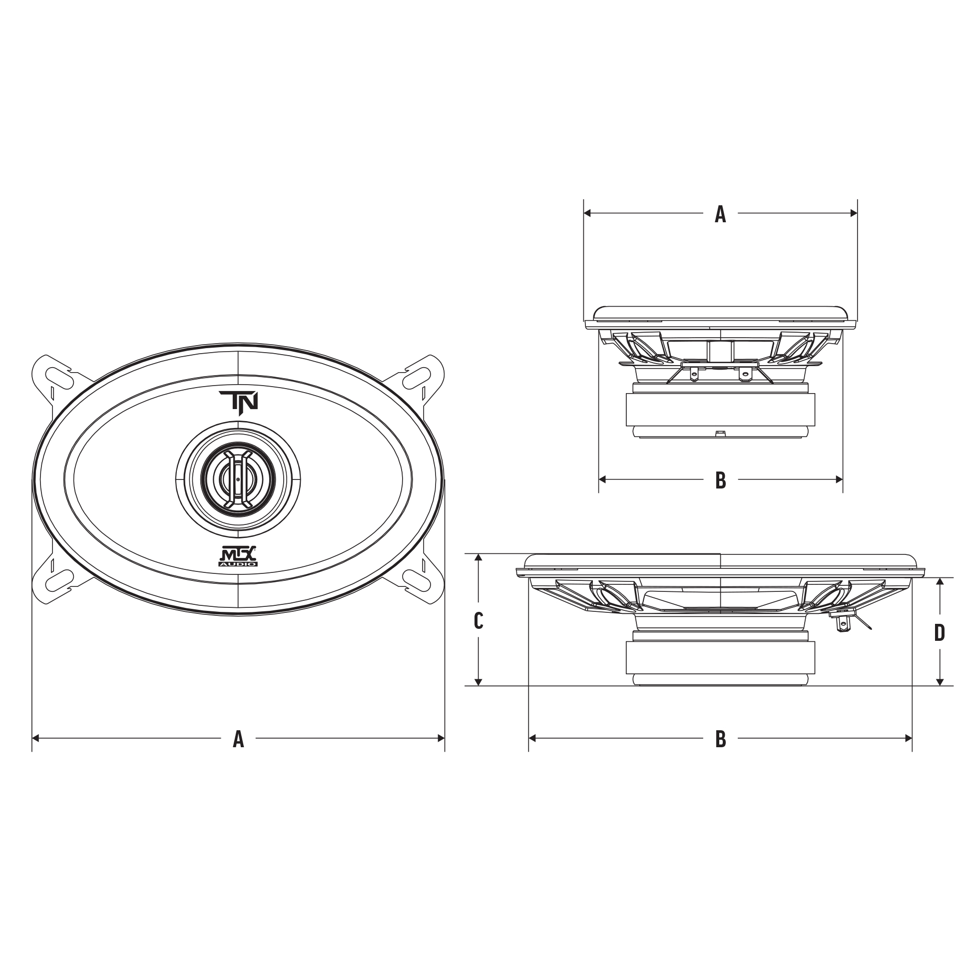 The TERMINATOR46 is a 4" x 6" coaxial speaker that is capable of handling up to 40W RMS power and has a 4Ω impedance. The unit includes a durable steel basket, polypropylene cone, and silk dome tweeter.