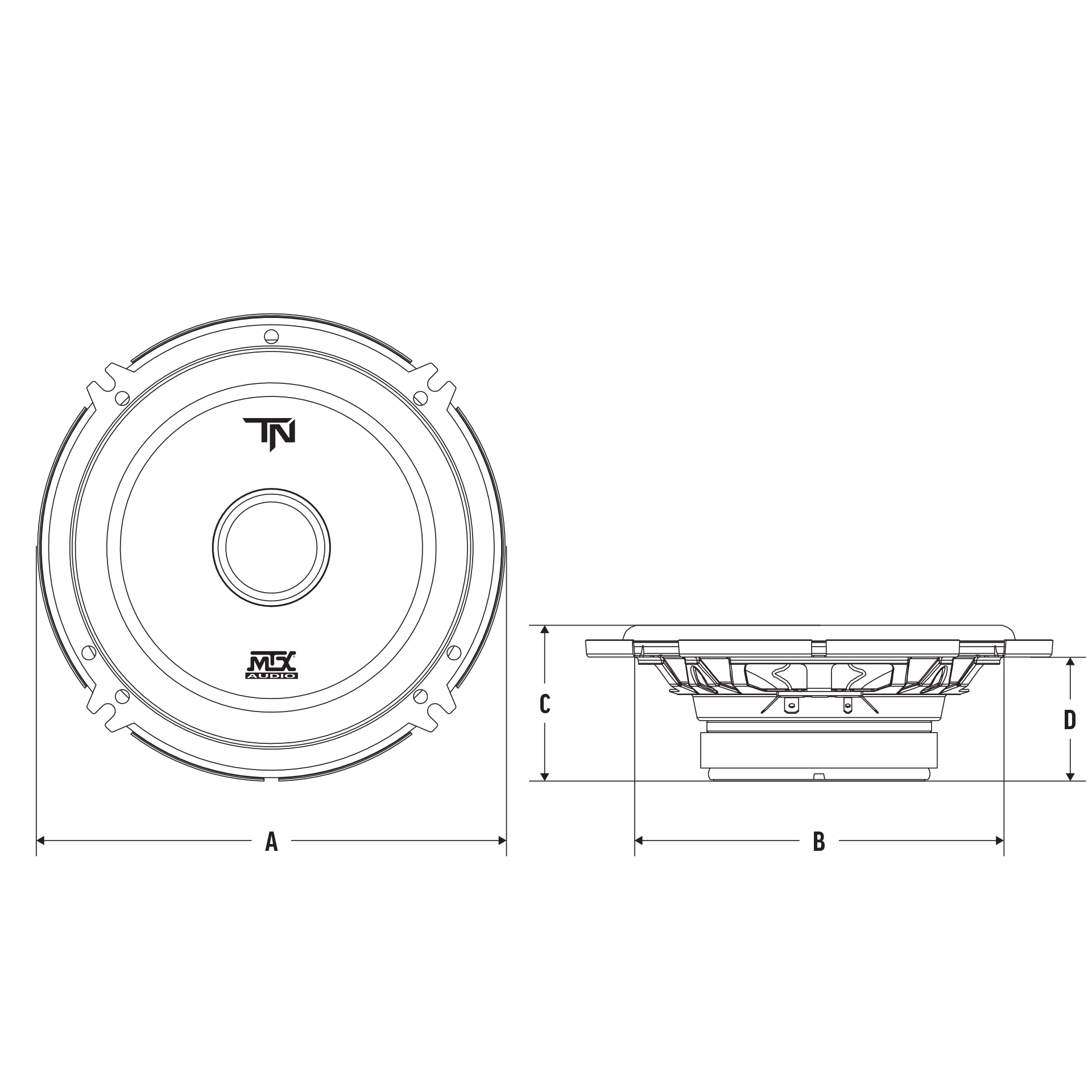 The TERMINATOR6S is a 6.5" component speaker that is capable of handling up to 45W RMS power and has a 4Ω impedance. The unit includes a durable steel basket, polypropylene cone, and silk dome tweeter.