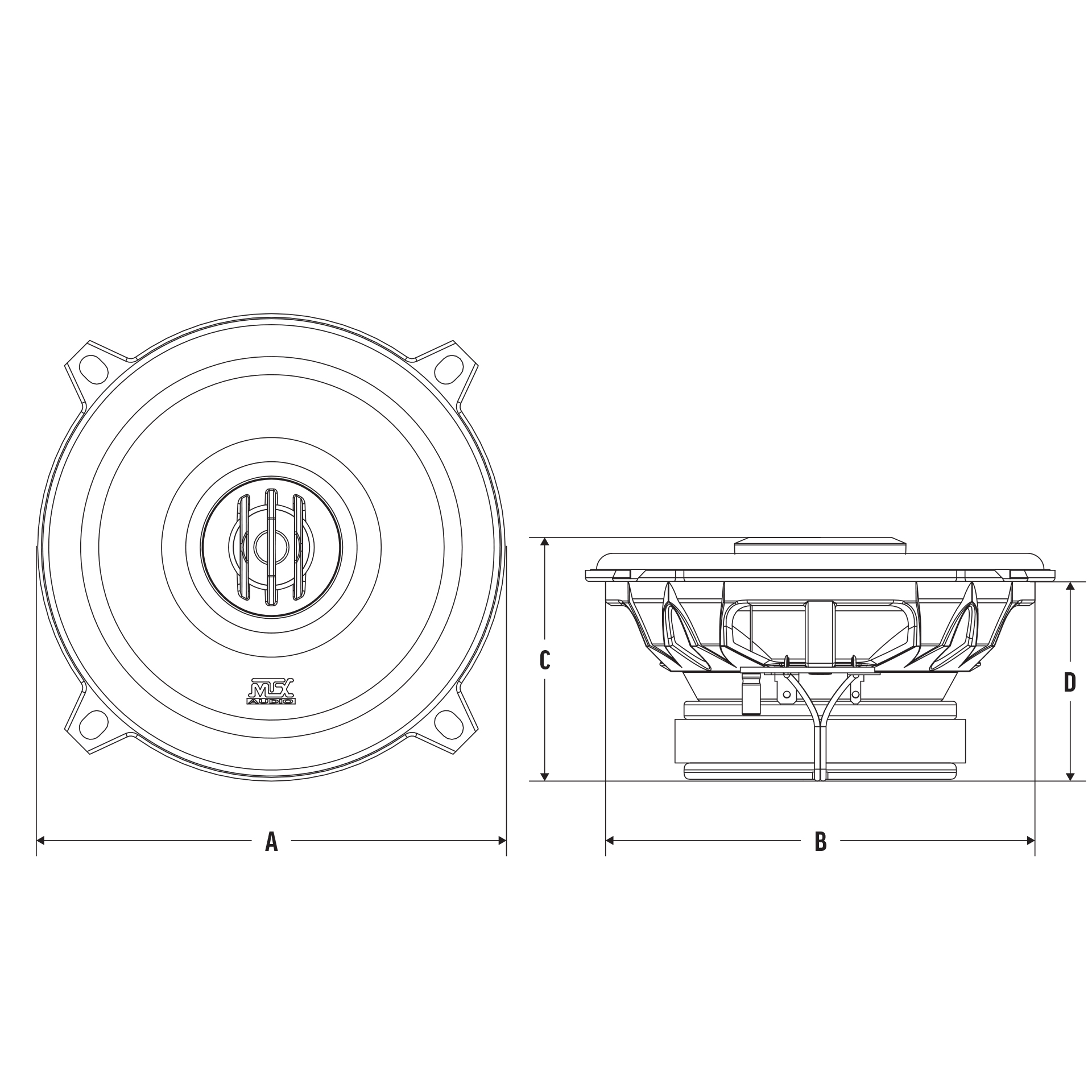 • A - Speaker Diameter:                      5.11" (129.9mm)